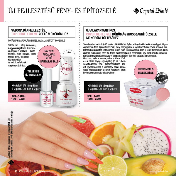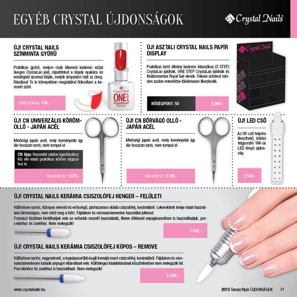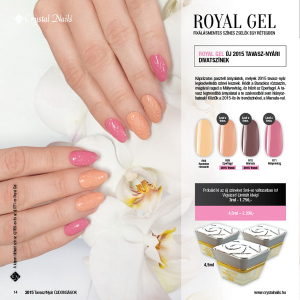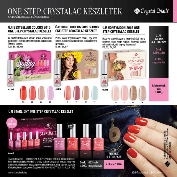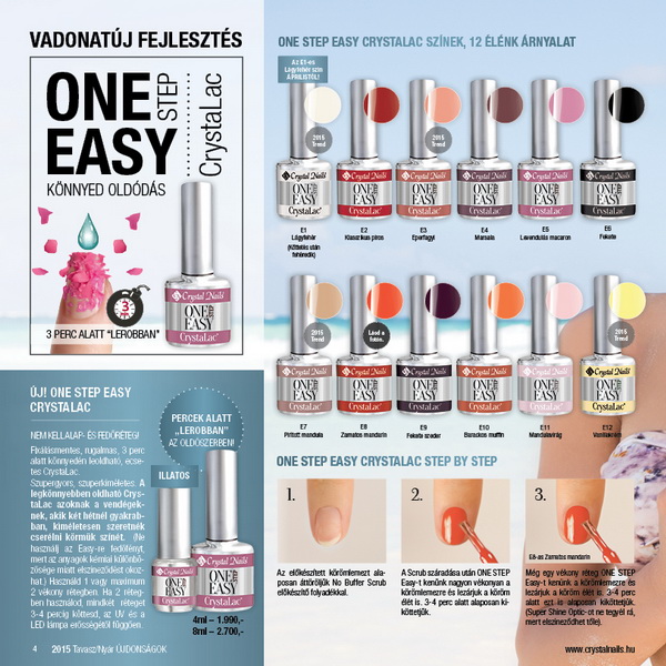 Köszöntsd Te is a napsütéses tavaszt 2015 tavasz-nyári szezon legdivatosabb trendszíneivel, melyek tavaszi KÖRÖMHAJÓ-n mutatkoztak be; az újdonságok mostantól a Crystal Nails üzleteiben is beszerezhetők a 2015 tavasz-nyári katalógussal és a 2015/2016 Nagykatalógusával együtt. A KÖRÖMHAJÓ-n az ezúttal minden eddiginél nagyobb érdeklődés közepette debütáltak és a vadonatúj fejlesztések, egy teljesen új anyagcsoport, a ONE STEP Easy, illetve a divatházak legmenőbb trendszínei.