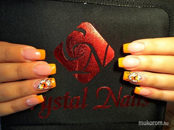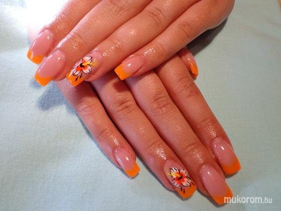 Narancs zselés köröm akril virággal
