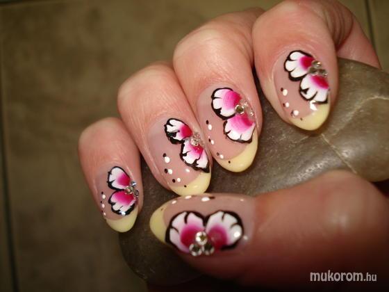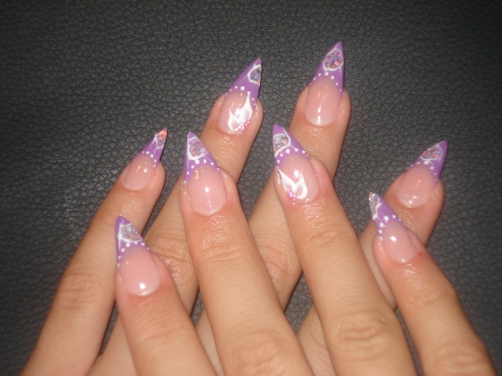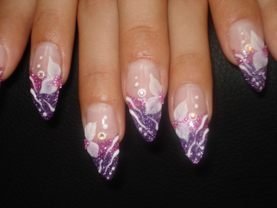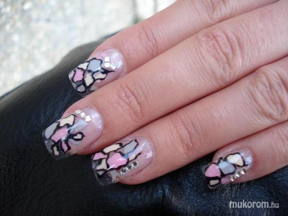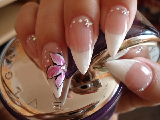 épített hegyes színes zselével,opállal,és 3d-s zselés virággal