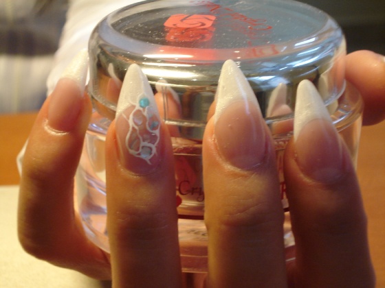 épített stiletto egy kis kagylóval,akril kontúrral
