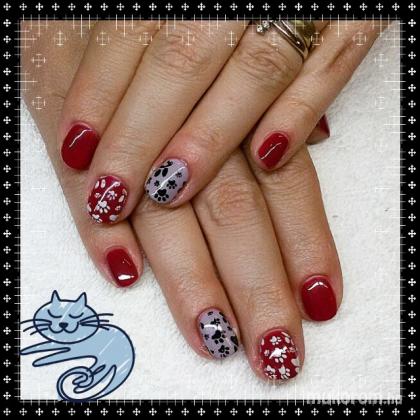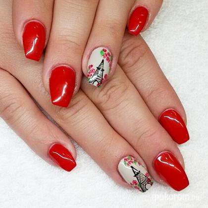 Piros műköröm festett mintával