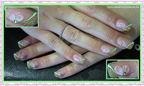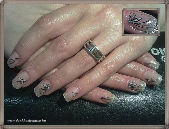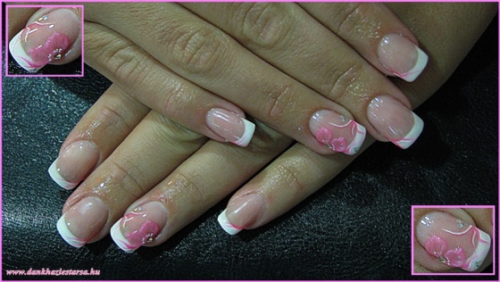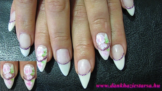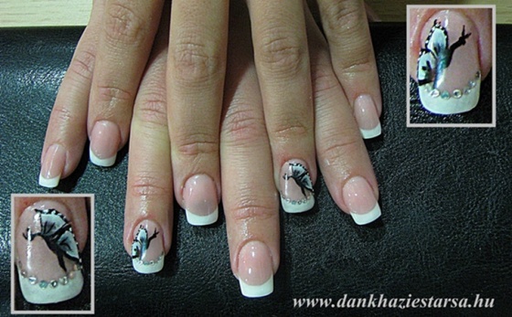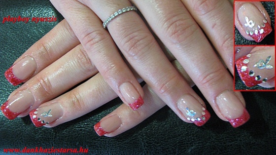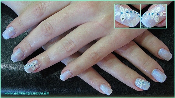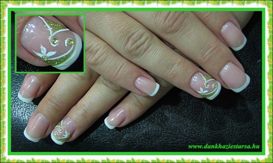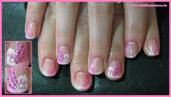 Saját körmön francia, csillám és akril festés