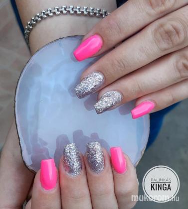 Neon rózsaszín körmök csillámmal