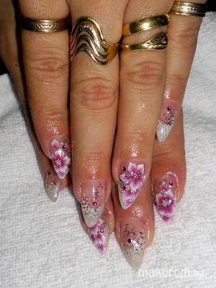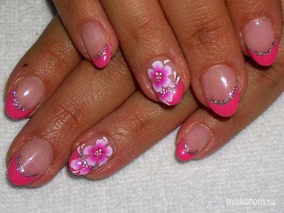 Csillogó pink végek akril virággal