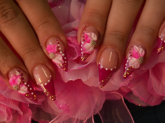 zselés köröm porcelán virággal