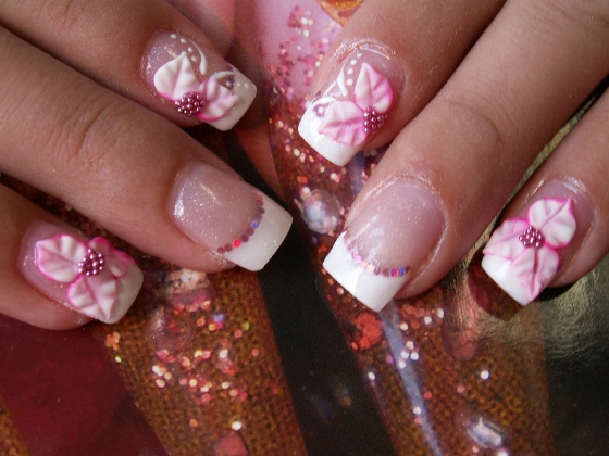 zselés köröm porcelán virággal