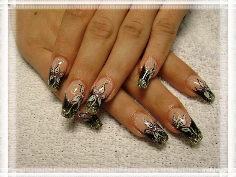 fekete csillámos akril virággal