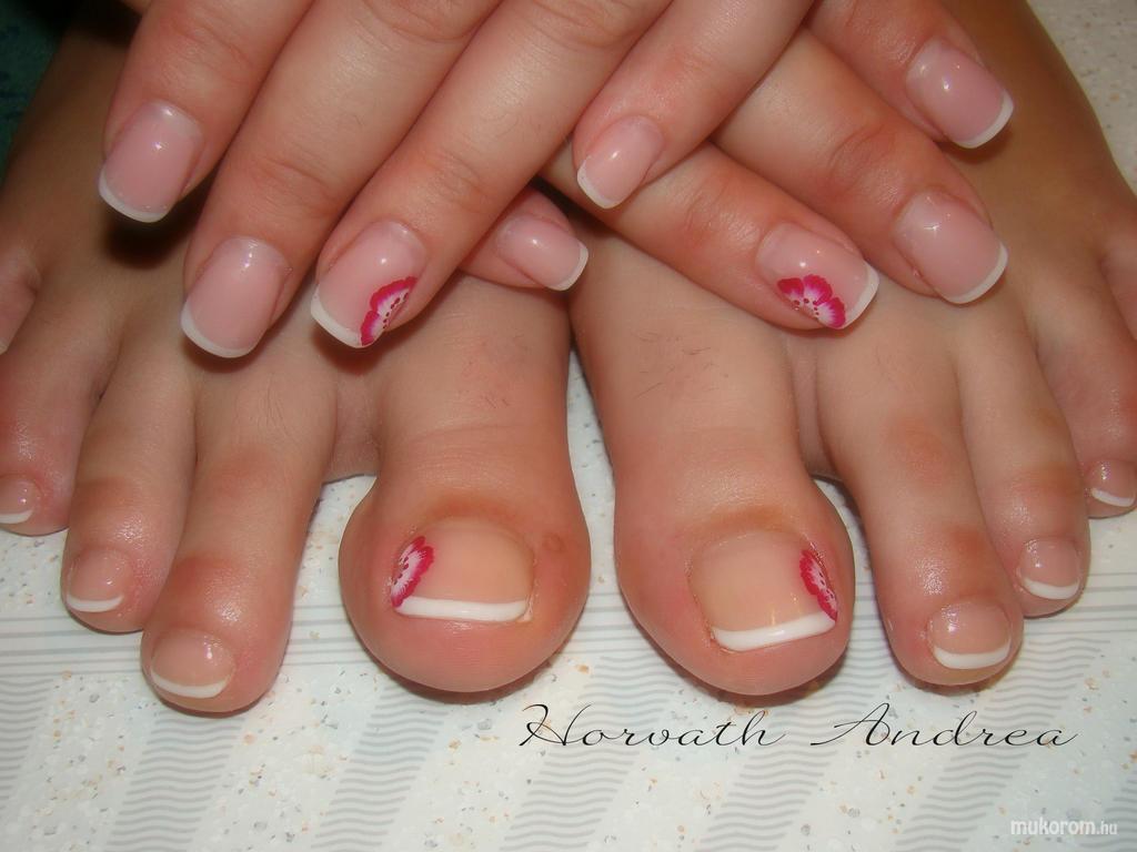 francia kézen lábon akril virággal