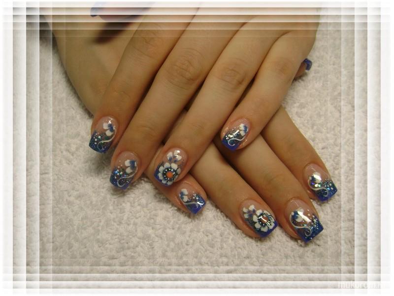kék virágos csillámos