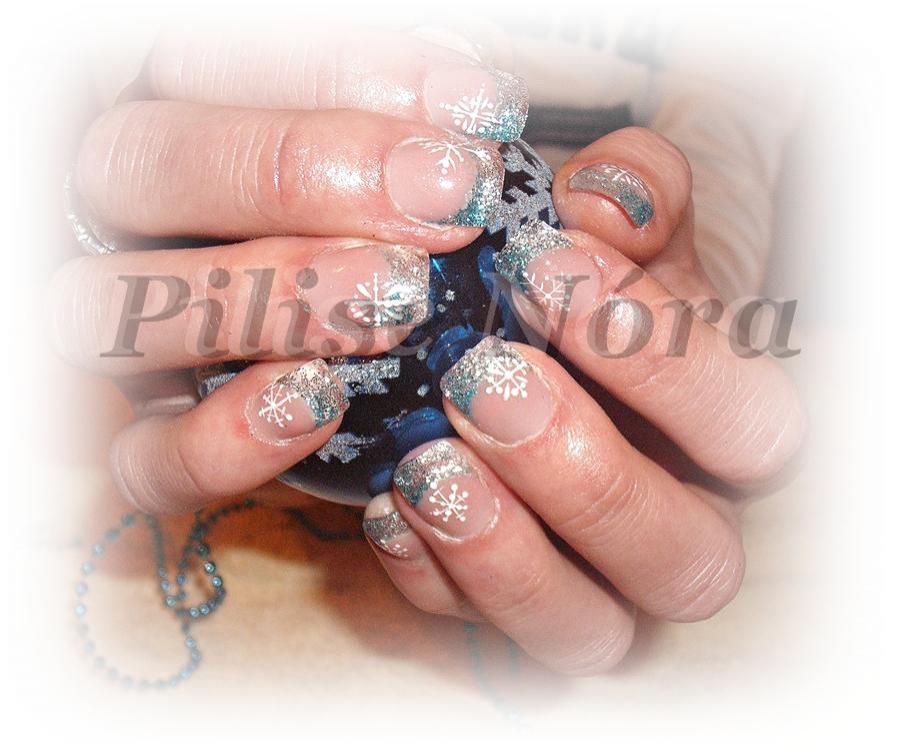 műköröm csillámmal akril mintával