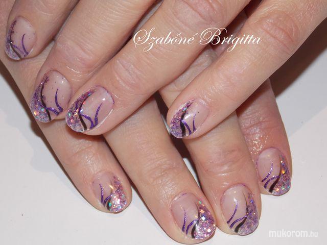 lila csillámporral műköröm