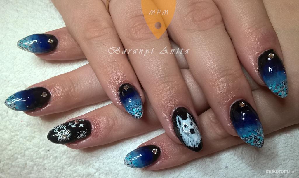 Színes porcelán köröm farkas mintával