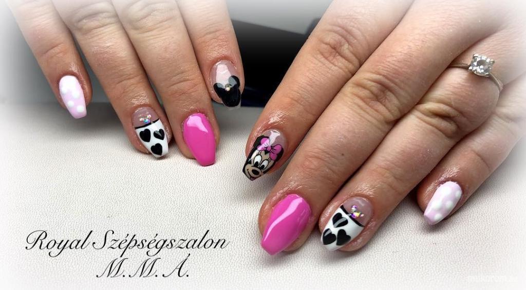 Minnie egeres kézzel festett körmök