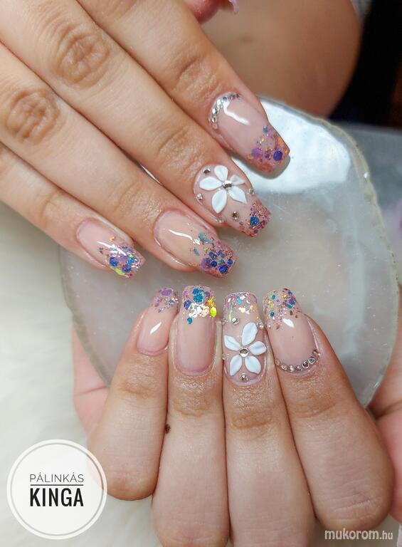 Nude körmök 3D virággal és gliterrel