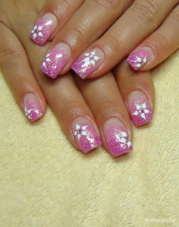 Rózsaszín körmi 3D zselés virágokkal