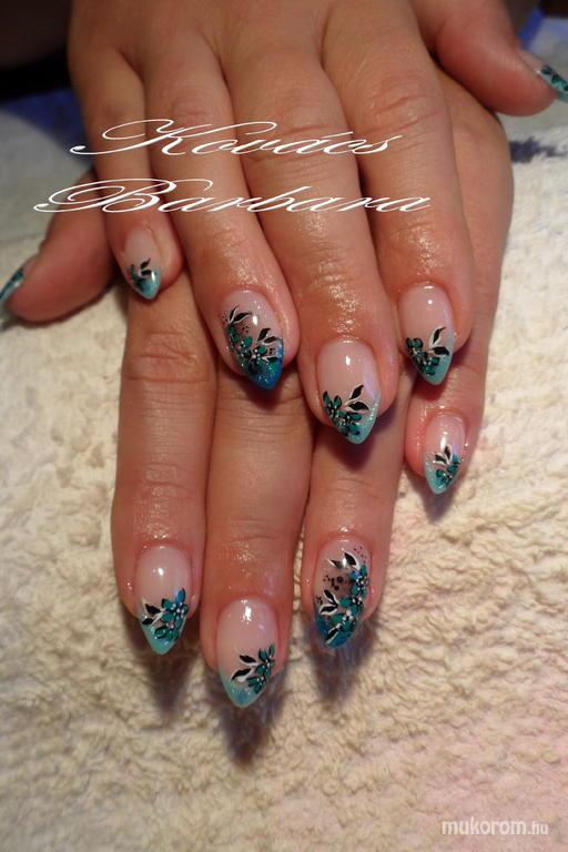 Kék köröm türkíz virágokkal