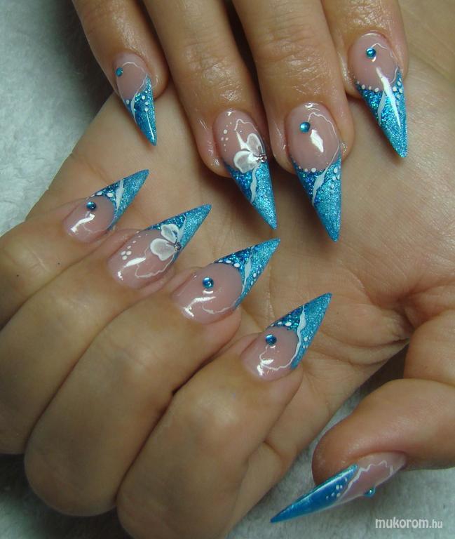 Kék stilettó zselés virággal