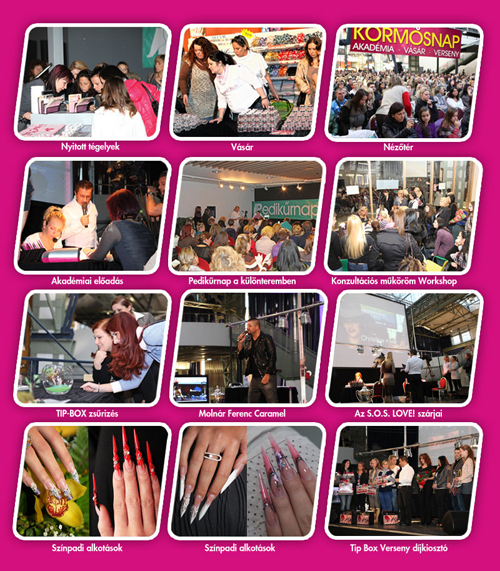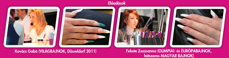 Lássuk a páratlan siker titkát: A 2300 lelkes látogatón felül kellett hozzá 9 Nemzetközi Aranyérmes Bajnok, akik most is a legmagasabb szakmai színvonalon tartották meg technikai és díszítő tréning-előadásaikat; mindig szép munkákkal, belecsenve egy-két trükköt, új fogást; és ami még nagyon fontos, mindezt a szalonmunkában használhatóan tálalva. Csak néhány példa: Retro divat a körmökön, versenytechnika a szalonban, tüzes stiletto, rövid körmök díszítése a nagyminták átalakításával… Mind-mind egy-egy szakmai unikum.