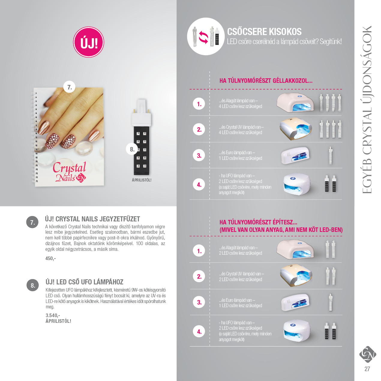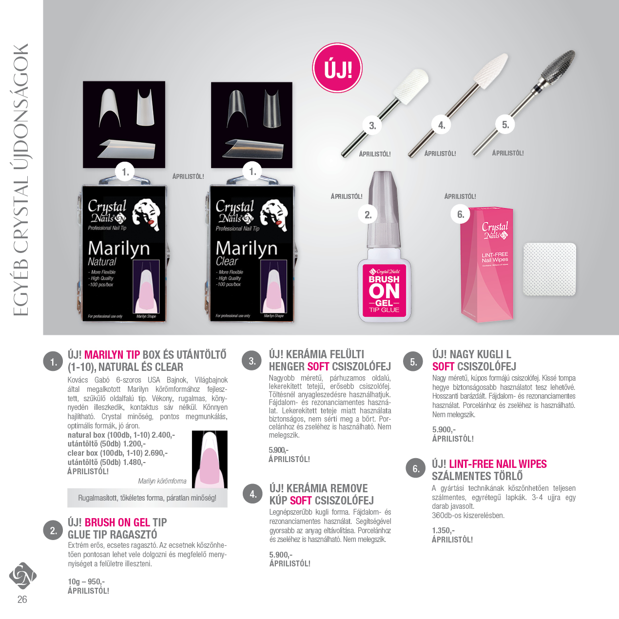 Varázsold el vendégeid az új divatszínekkel, újdonságokkal, fejlesztésekkel és anyagokkal. Az újdonságokat már beszerezheted a Crystal Nails József körúti üzletében, Westendben található üzletünkben, viszonteladóinál, területi képviselőinél(Körömfutárok) és a webáruházban.