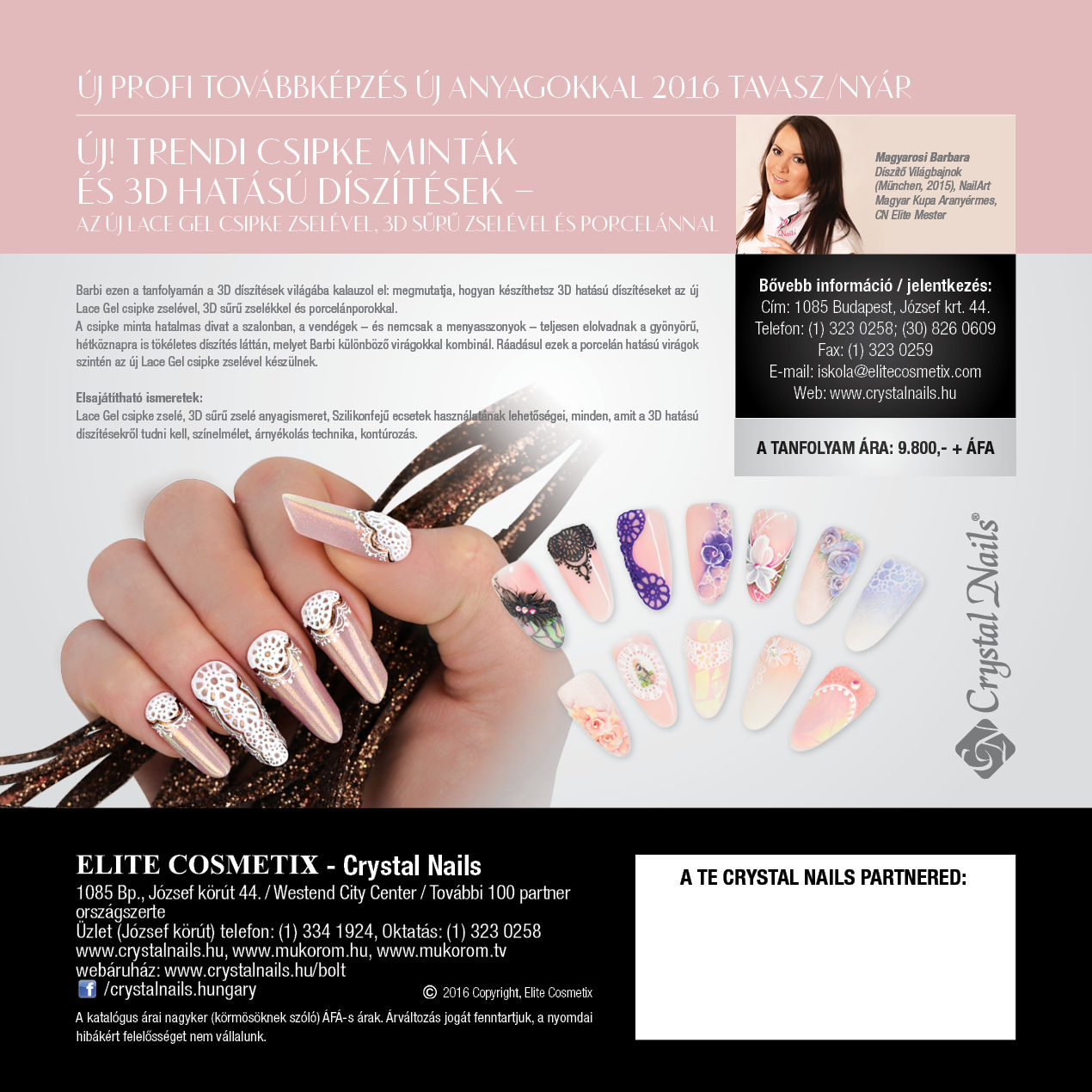 Köszöntsd Te is a tavaszt a szezon legtrendibb színeivel, alapanyagaival, eszközeivel és fejlesztéseivel, melyek gigantikus érdeklődés közepette debütáltak a Crystal Nails Körömhajón. Az újdonságok mostantól az üzletekben is beszerezhetők a Crystal Nails 2016 Tavasz/Nyár katalógusával együtt.
